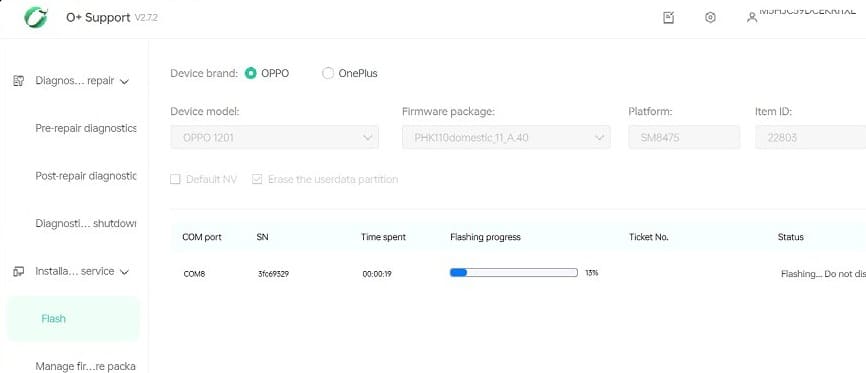 - Click Flash Service